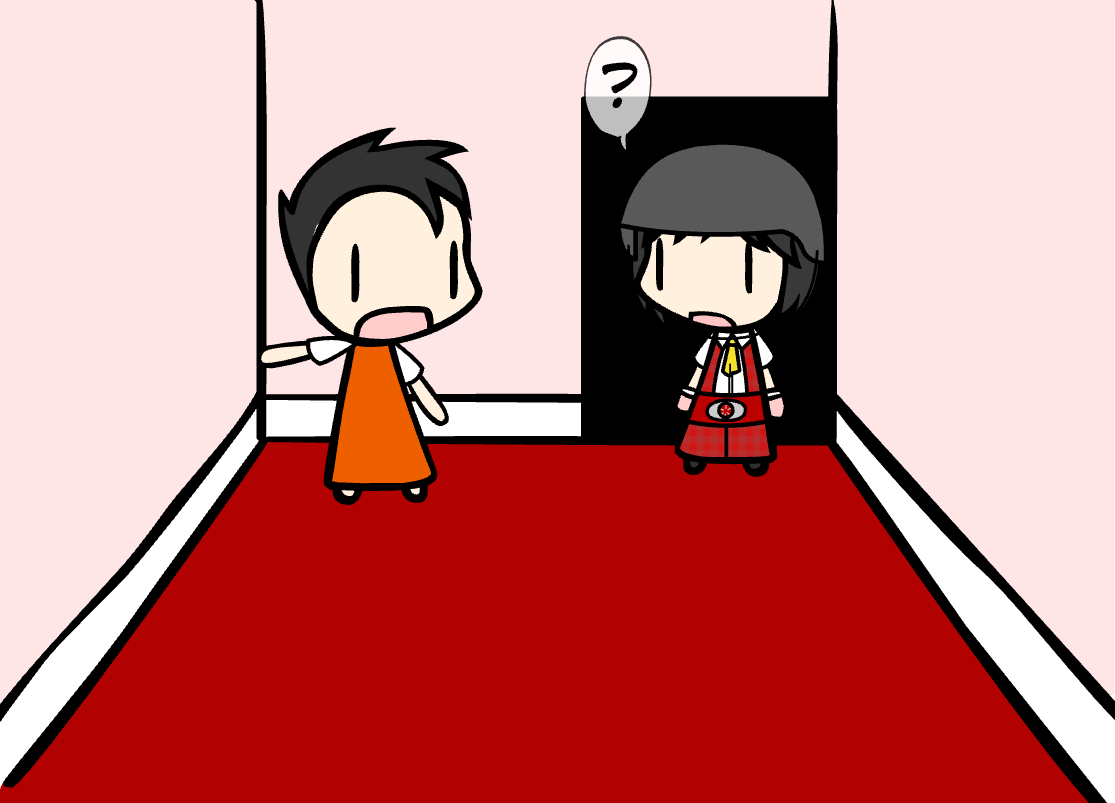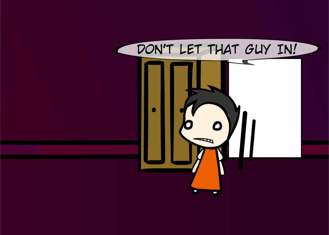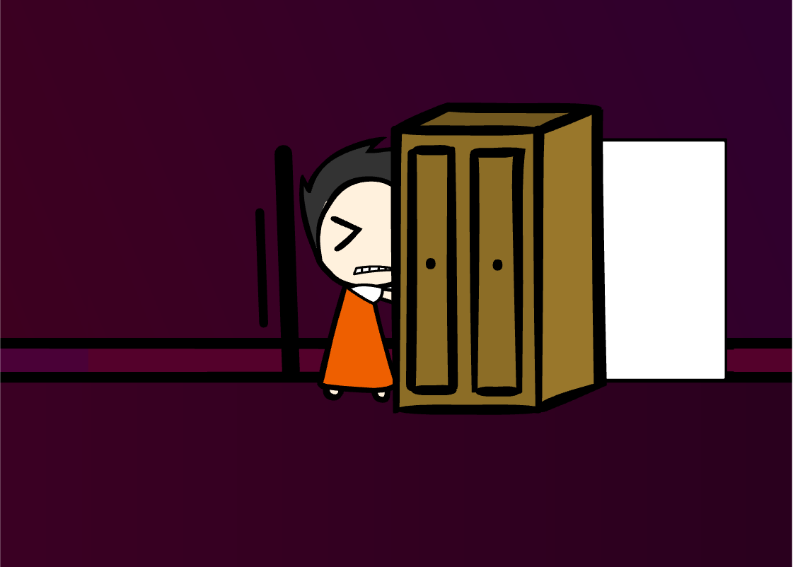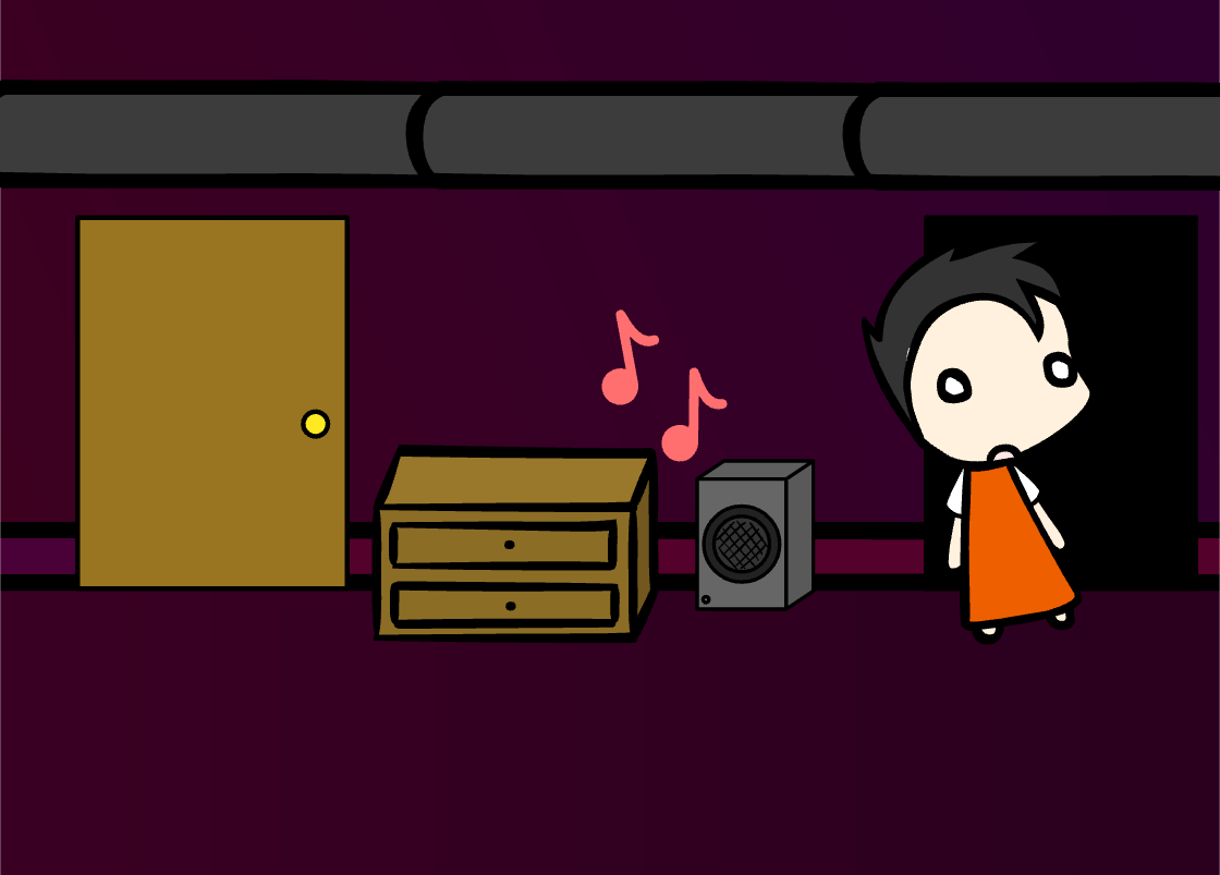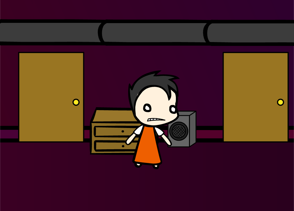 You ran into the dark room as a voice shouted “Don’t let that guy in!” can be heard. You, then saw a cupboard, then, through clever thinking, you pushed to cupboard to block the doorway. You knew the barrier will be temporary, as you hear the guards shouting and banging at the door, with one voice stinging you “Let us in! We need to put you back in place!”.