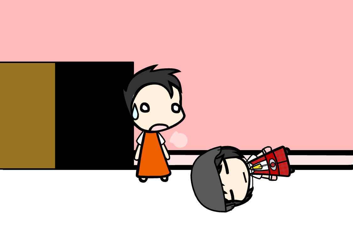 You pushed the youthful security guard so hard, he got slammed to a wall and fell unsconcious as he collapsed immediately onto the floor. You breathed sighs as you have exerted enough energy to push such a lithe, yet still considerably heavy body to be slammed against a wall. Furthermore, you do not have enough both the energy moral acumen to throw insults at the now unconscious security guard.