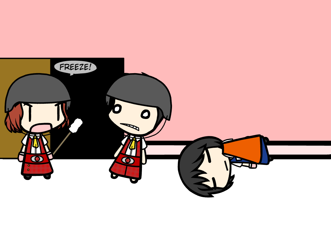 And she appears to be ready to fight you, especially as she shouted the word you hate the most, “Freeze!”. Luckily, you now carry a belt full of intimidating tools with you, which might be helpful in a fight.
