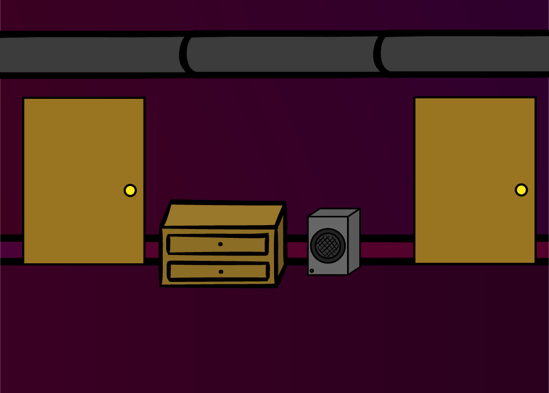 You can barely see what’s in front of you; you’re in a dark room. But you can still see that there are 2 doors and a bunch of miscellaneous objects, along with a pipe. The place also looks a bit dirtier.