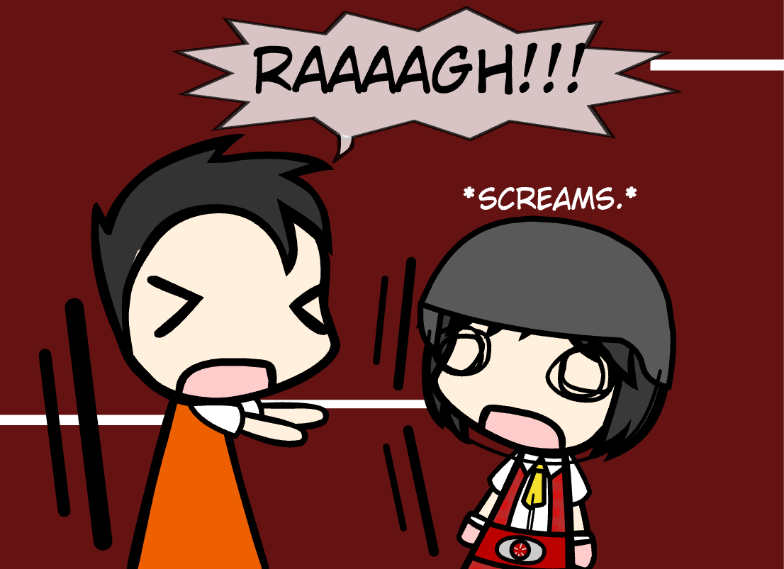 You attempt to sneak past the distracted security guard. However, said security guard notices you trying to sneak behind him, then attempts to force you back into your cell, using his gloved arms. Surprisingly, his arms appear to be below what would be expected for a security guard.